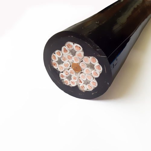 此次研發(fā)的艦艇驅(qū)動用中壓柔性電纜首要參照IEC60092系列規(guī)范規(guī)劃,選用耐曲折柔性導(dǎo)體,三層共擠橡膠絕緣和半導(dǎo)電屏蔽,織造分屏和總屏+半導(dǎo)電復(fù)合屏蔽方式,選用耐油、耐磨、低煙無鹵阻燃彈性體護套。